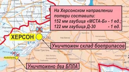 Кадр: Минобороны РоссииЗа минувшие сутки Россия нанесла массированный удар по критическим объектам энергосистемы, обеспечивающим функционирование предприятий оборонно-промышленного комплекса Украины. На краснолиманском направлении Вооруженные силы Украины потеряли до 120 военнослужащих, на южнодонецком — около 95, на купянском — до 40. Российские военные уничтожили две украинских радиолокационных станций (РЛС) в Харьковской и Николаевской областях, а также три склада боеприпасов в Елизаветовке, Доброволье и Новоукраинке.Российским войскам с момента начала проведения спецоперации удалось уничтожить 384 самолета, 207 вертолетов, 3088 беспилотных летательных аппаратов, 403 зенитных ракетных комплекса, 7826 танков и других боевых бронированных машин. Кроме того, ликвидирована 8326 единиц специальной военной автомобильной техники.